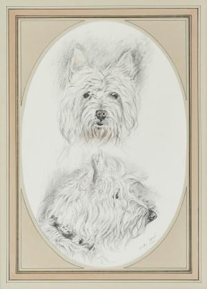 Deux études de choupette, sanguine et fusain sur papier, daté 19...