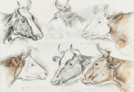 Etudes de vaches, sanguine et fusain sur papier, 44x64 cm.