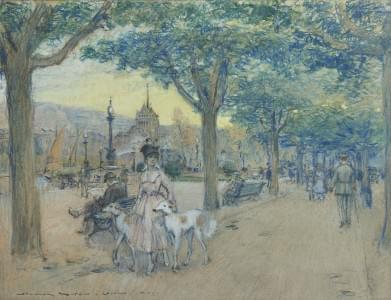 Promenade à Genève, pastel sur papier, signé, 30x40 cm