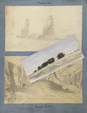 Vues d'Egypte, aquarelle et mine de plomb sur papier, de 13x28 à...