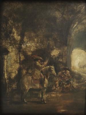 Personnages discutant et cavalier, mine de plomb sur papier, 19,...