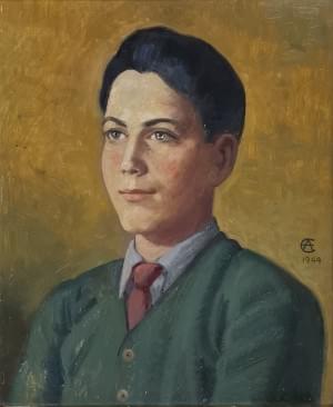Portrait de jeune garçon, huile sur carton, monogrammée CA et da...