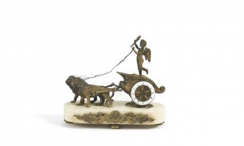 3718. Pendulette char de l'Amour tiré par des lions, France, XIXe