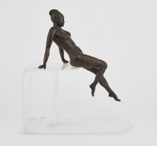 Jeune femme en maillot de bain, bronze à patine brune, L 38 cm
