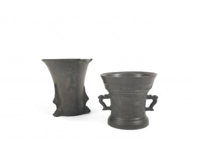Cloche de vache, bougeoirs, mortiers et boîte