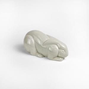 Lapin pour Saint-Clément, céramique blanche craquelée, L 33 cm