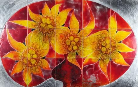Edelweiss, quinze carreaux de céramique émaillée assemblés sur u...