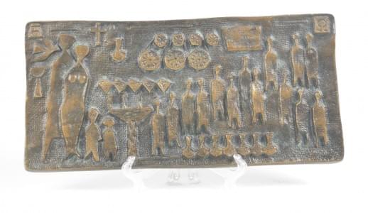 Plaquette à décor de personnages, bronze, signé et daté 1966, 12...