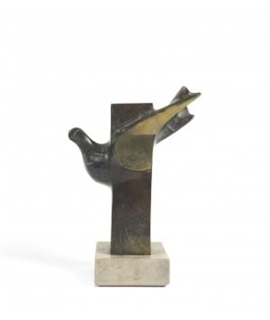 Composition à la colombe, bronze à patine marbre, signature illi...