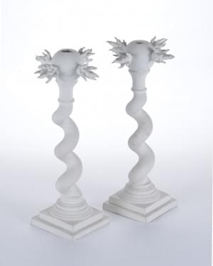 Paire de bougeoirs torses surmontés d'une boule enflammée, plâtr...