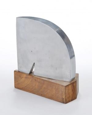 Composition abstraite, sculpture aluminium et bois, H 26 cm