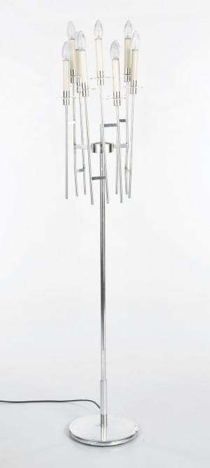 Lampe de parquet Design à 6 lumières, métal chromé, H 160 cm