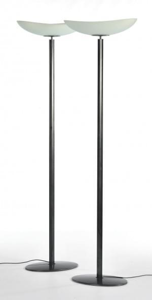 Paire de lampes de parquet Creonte, métal laqué gris, verre dépo...