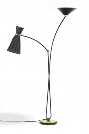 Italie, circa 1950, ed. Arteluce, métal laqué noir, H 174 cm