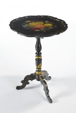 Bois noirci et doré, peint à décor de fleurs, H 69 cm