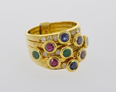 100. Adler, Sérail, bague 5 rangs sertie de rubis, saphirs, émeraudes...