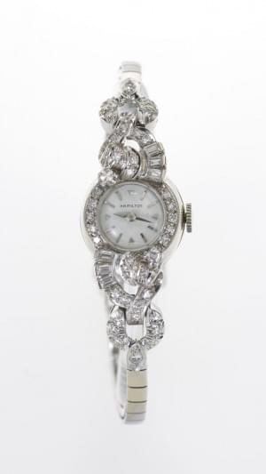 2. Hamilton, montre ronde mécanique sertie de diamants