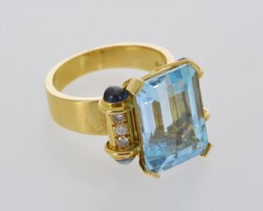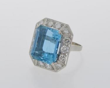 60. Bague sertie d'une aigue marine taille émeraude entourée de diam...
