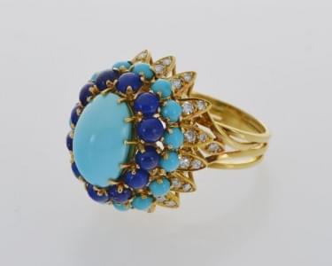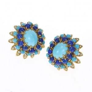 54. Clips d'oreilles sertis de turquoises, lapis et diamants