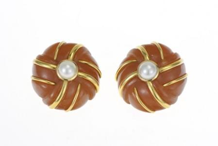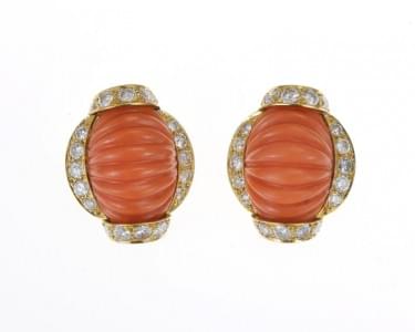 56. Paire de clips d'oreilles ornés d'un cabochon de corail godronné...