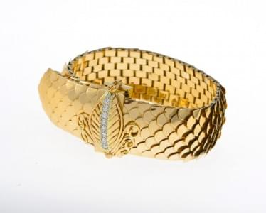 Fermoir serti d'une ligne de diamants, années 40, or 750, L 21 c...
