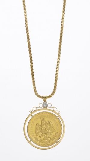 66. Pendentif représentant une médaille mexicaine retenu par une cha...