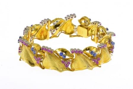 62. Beau bracelet stylisé orné de 16 saphirs taille poire et entrela...