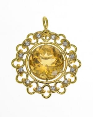 70. Broche-pendentif sertie d'une citrine taille ronde entourée de d...