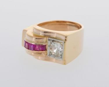 71. Bague sertie d'un diamant taille ancienne et d'une rangée de rub...