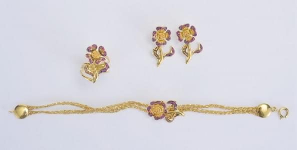 73. Semi-parure comprenant un bracelet, une bague et une paire de bo...