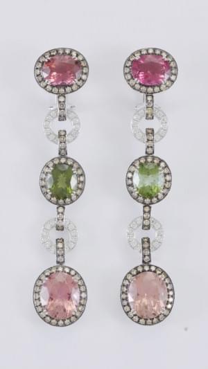 78. Paire de pendants d'oreilles sertis de tourmalines roses et vert...