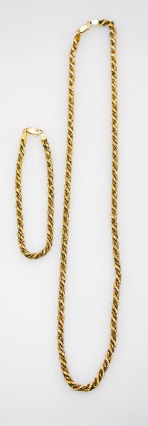 80. Collier et bracelet deux tons d'or à maille torsadée