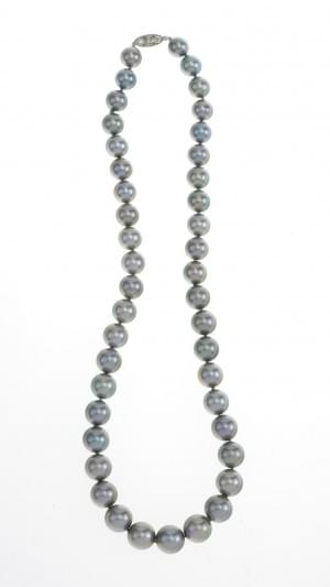 83. Collier de perles de Tahiti et son fermoir serti de 3 diamants