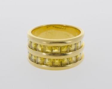 97. Bague sertie de deux rangs de saphirs jaunes calibrés