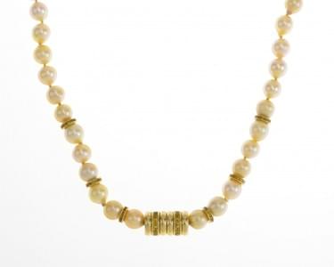 98. Collier de perles dont le fermoir cylindrique ainsi que 6 interc...