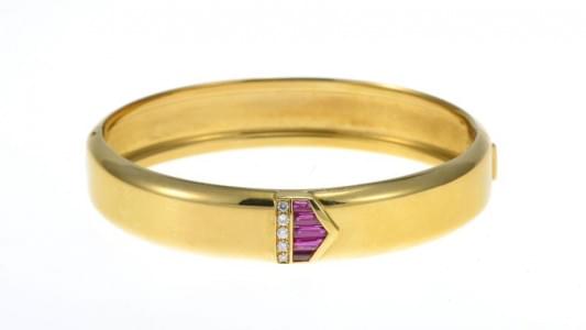 101. Adler, bracelet jonc orné d'une pointe sertie de rubis et diaman...