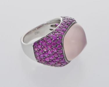 103. Adler, bague pavée de rubis et sertie d'une pierre de lune