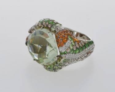 104. Adler, bague sertie d'un quartz vert, de tsavorites, de saphirs...