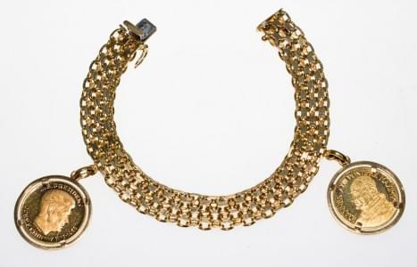134. Bracelet à maille fantaisie serti de deux pendentifs
