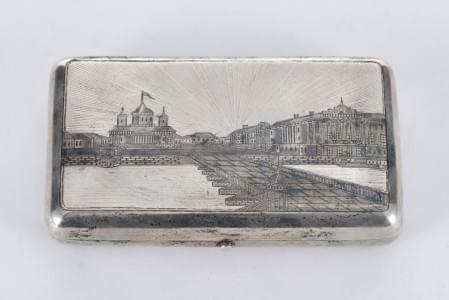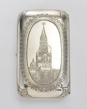 141. Boîte à cigarettes à décor gravé de la tour du Kremlin dans un m...
