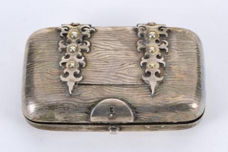 140. Boîte à cigarettes imitant un coffret en bois à charnières
