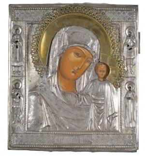 Panneau, oklade en métal argenté, 32x28 cm. Provenance: vente Ch...