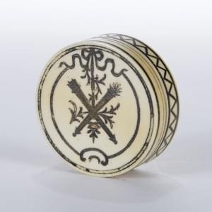 168. Boîte ronde à décor de flambeaux croisés symbolisant l'amour