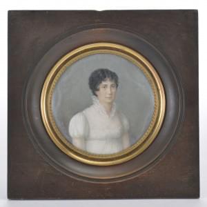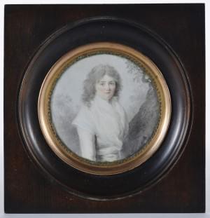 miniature ronde, fin XVIIIe s, gouache sur ivoire, D 7 cm. Il s'...