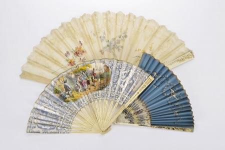 179. Trois éventails à décor de scène galante, rinceaux et fleurs