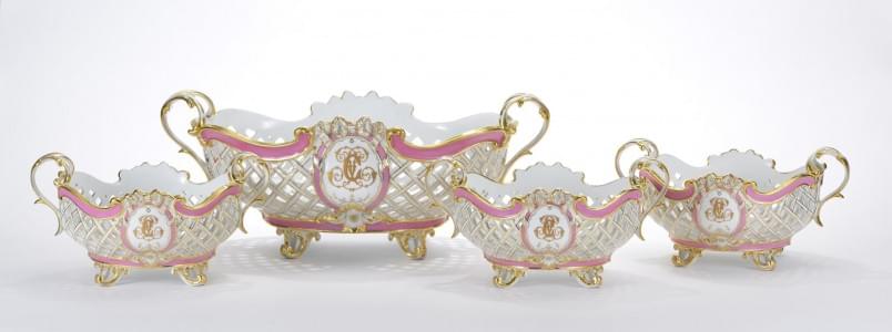 184. Centre de table rose et or formé d'une grande corbeille ovale et...
