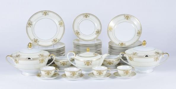 Isamu Satoe, porcelaine, comprenant: 12 assiettes à dîner, 12 cr...