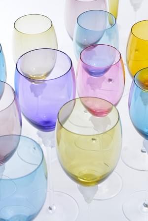 comprenant: 16 verres à vin rouge de couleurs et 14 transparents...