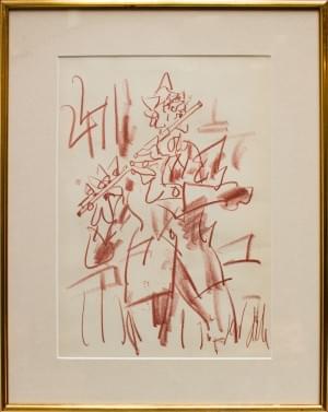 Paire de fusains et gouaches sur papier, l'une signée Marrovic,...