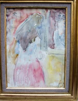 Jeune femme au miroir, aquarelle sur papier signée et dédicacée...